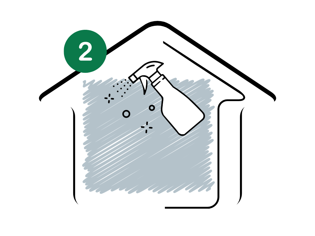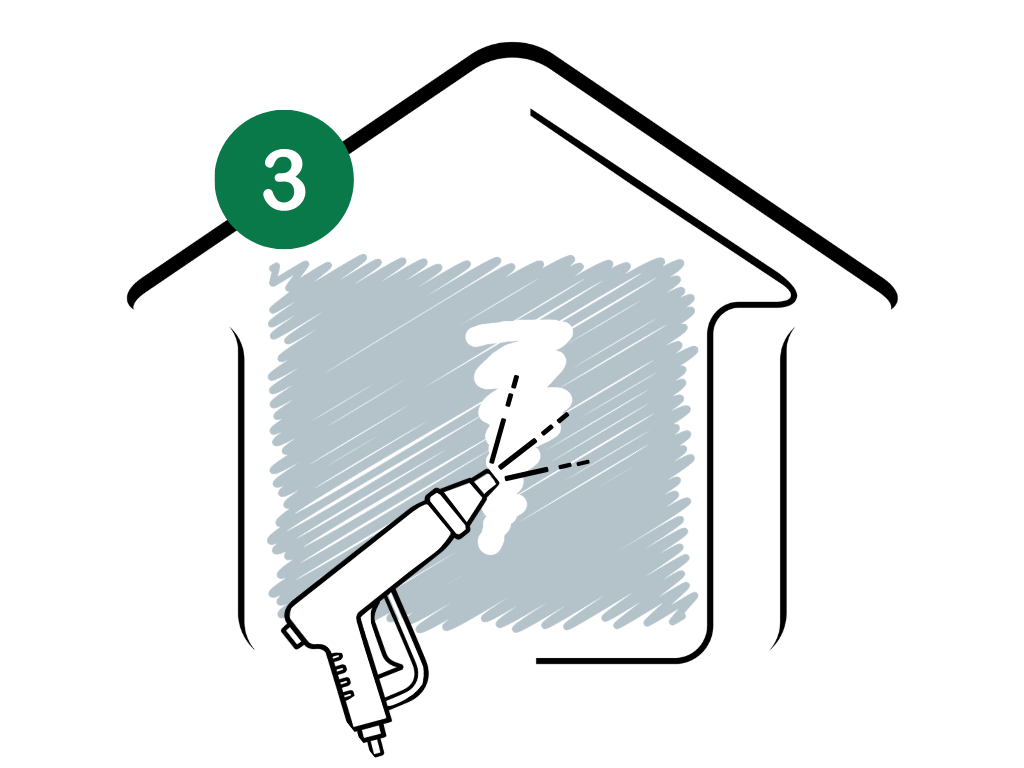 Auftragen einer Reinigungslösung, um Algen & Schimmelsporen abzutöten und Schmutz zu lösen.